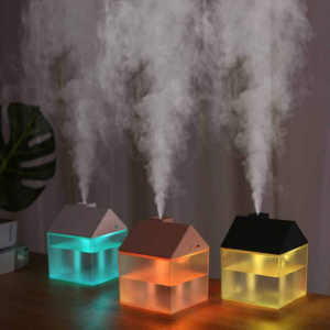 • Házikó alakú ultrahangos párologtató diffúzor – LED világítással, halk működésű párásító otthonra és irodába 250 ml – fehér (BLLV)