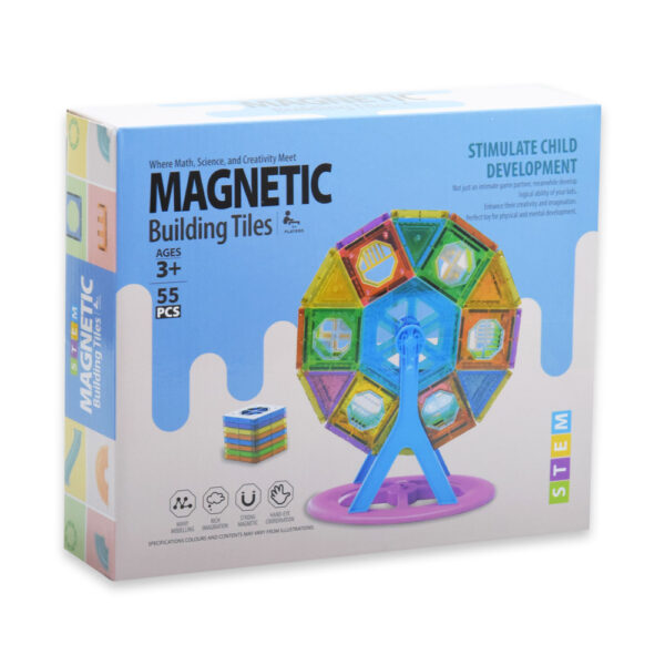 55 részes mágneses építőkészlet – alakzatok, város részletek és akár óriáskerék építéséhez – szórakoztató, készségfejlesztő, kreatív játék (BBJ) (BBMJ)