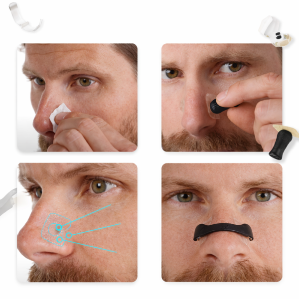 A rugalmas, ergonomikus kialakítás stabilan a helyén marad alvás közben. Az erős, mégis bőrbarát ragasztópárnák biztosítják a tartós rögzítést, így az orrtágító nem mozdul el éjszaka.