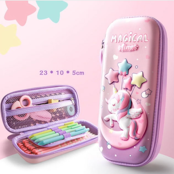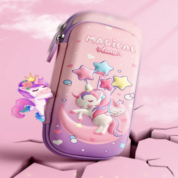 Tedd varázslatossá az iskolai mindennapokat ezzel az aranyos pegazus tolltartóval! 💖 Ez a rajzfilmes stílusú, rózsaszín írószer doboz lányoknak nemcsak praktikus, hanem igazi mesebeli kiegészítő is. A bájos pegazus minta, a hold és csillag motívumok, valamint a finom, álomszerű részletek garantáltan elvarázsolják a kislányokat. 🌙⭐