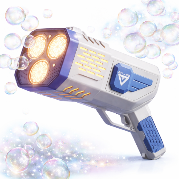 A 36 lyukú kialakításnak köszönhetően ez a buborékpisztoly percenként több ezer buborékot képes kilőni. Egyetlen gombnyomás, és már indul is a buborékzápor – nincs mártogatás, nincs megállás, csak folyamatos élmény! 🌪️🫧