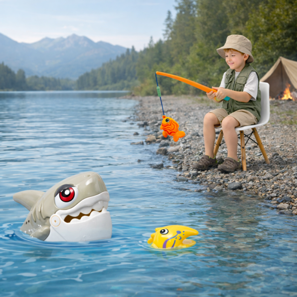 A cápás mágneses horgász játék egy pörgős, nevetéssel teli játékélményt kínál, ahol a gyerekek halakat fognak… és egy éhes cápával is találkoznak! 🐟🦈