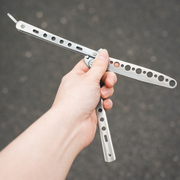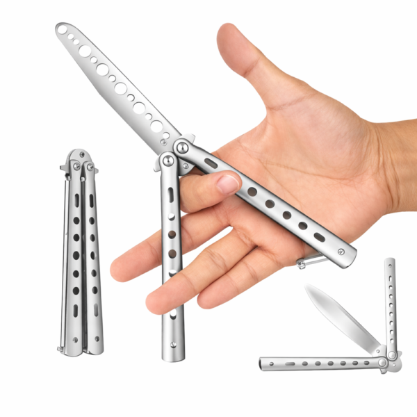 Ha menőnek tartod a pillangókéses trükköket de még soha nem volt a kezedben egy igazi akkor ez egy remek lehetőség hogy begyakorold a mozgásokat anélkül hogy elvágnád a kezed.