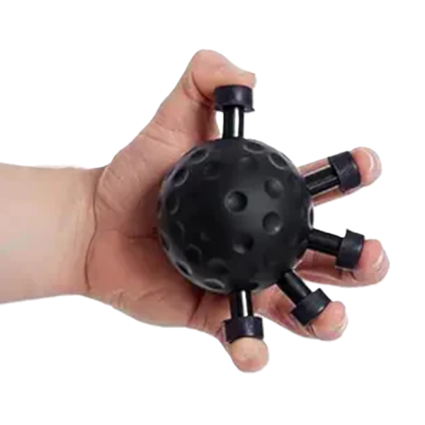 A labda különálló, állítható ujjtámaszokkal rendelkezik, így minden ujj külön edzhet a saját tempójában. Ez javítja a fogáserőt, a kézügyességet és a finommotorikát, miközben kíméletes az ízületekhez.
