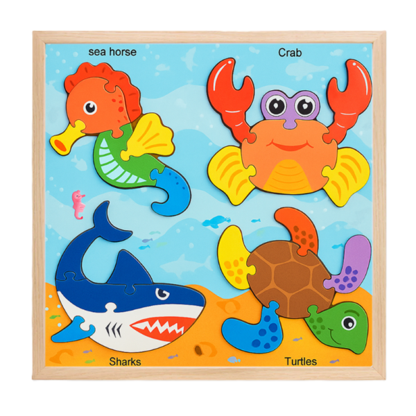 A 4 az 1-ben fa állatos kirakó egy prémium minőségű, oktató jellegű készségfejlesztő játék, amely tökéletes választás 2 éves kortól. A masszív, 30 × 30 cm-es fa kirakós tábla többféle aranyos állatmintát tartalmaz – például cápa, rák, teknős, csikóhal, valamint dinoszaurusz elemek – így egyszerre több témát kínál egyetlen játékban. A minták raktárkészlet szerint változhatnak.