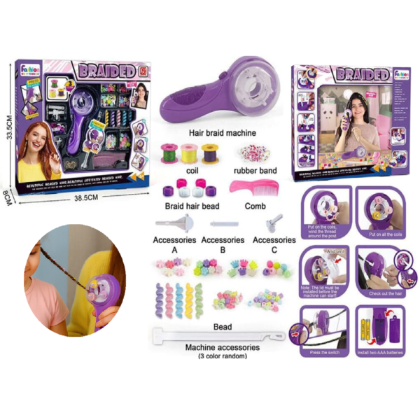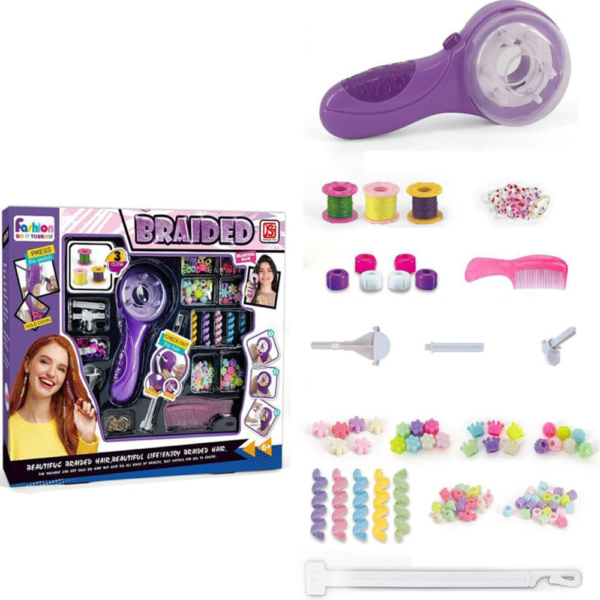 Fashion DIY automata tincskészítő készlet – 92 részes szett gyöngyökkel, szalagokkal és tincskészítőgéppel gyerekeknek (BBJ)