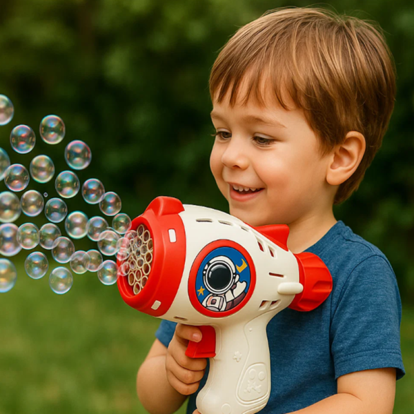 Ez az elektromos buborékfegyver rakéta dizájnjával és színes LED fényekkel még varázslatosabbá teszi a játékélményt. Egyetlen gombnyomással százával fújja a buborékokat, miközben a fényhatások még jobban lekötik a gyerekek figyelmét. A formája ergonomikus, kényelmes fogást biztosít, még a legkisebb kezek számára is.