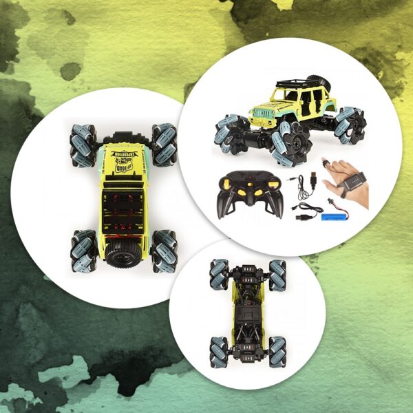 A hagyományos kisautók is hatalmas élményt nyújtanak, de azok csak egyenletes aszfalton használhatóak. A legtöbb a homokos, sziklás terepen elakad, lefullad. Más a helyzet a kis mini terepjárónkkal, amely felmászik a meredek sziklákra is, sőt még driftelni is tudsz vele. Köszönhető mindez az egyedi kialakítású kerekeknek, amelyet egyenként 7 kis különálló henger alkot. Ezek által a kisautó szinte hozzátapad a legkülönfélébb felületekhez, legyen az aszfalt, homok vagy sziklás terep.