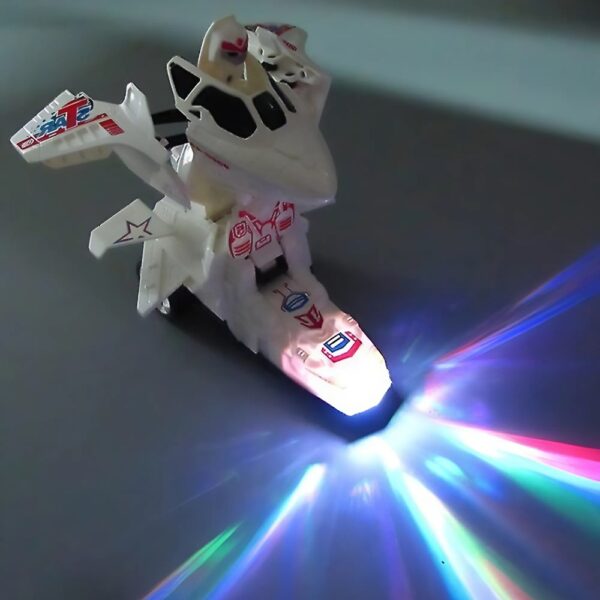 Fedezd fel a Galaxy Transformers izgalmas világát, ahol a szupergyors repülőgép egyetlen mozdulattal átalakul egy erőteljes robotharcossá! A felhúzható játék lehetővé teszi, hogy a repülőgép saját tengelye körül forogjon, miközben dinamikusan reagál a játék során felmerülő akadályokra – azokkal ütközve visszapattan, és tovább halad a kalandok felé.