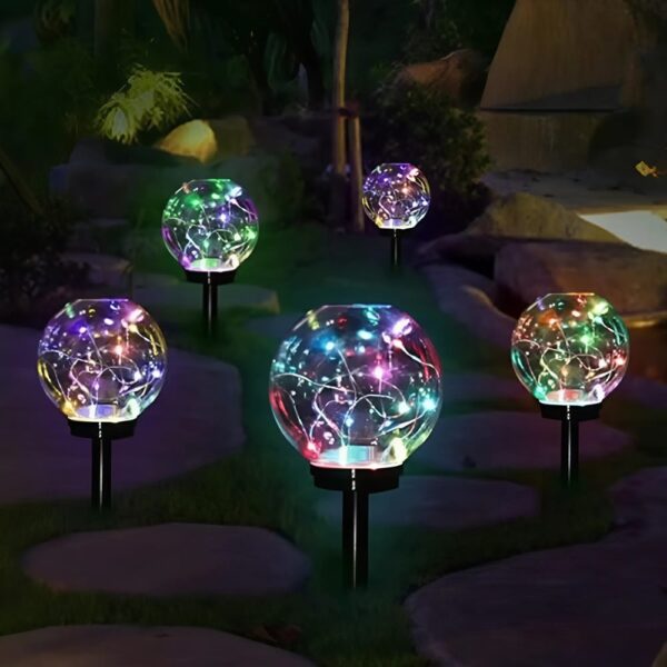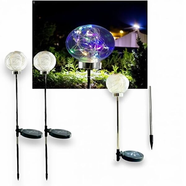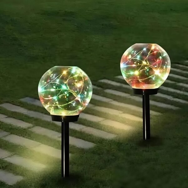 Gömb alakú, napelemes kerti LED lámpa – alkonyérzékelővel, RGB színváltós, 2 darabos szett (BBD)