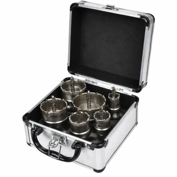A HA-0060 körkivágó fűrész készlet egy professzionális minőségű, 6 darabos lyukfűrész szett, amely ideális választás pontos és tiszta furatok készítéséhez különböző anyagokban. A készlet kiválóan használható szerkezeti acél, rozsdamentes acél, műanyagok (ABS, PE, PVC) és egyéb keményebb anyagok megmunkálásához.
