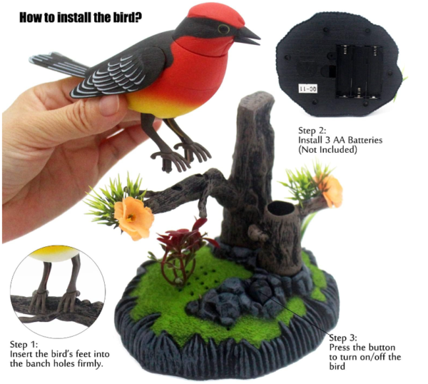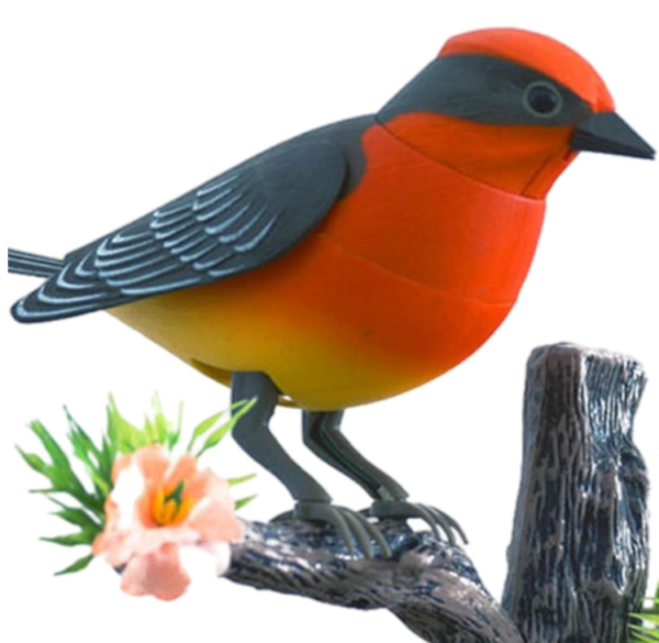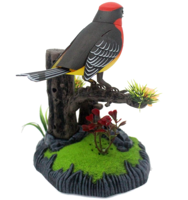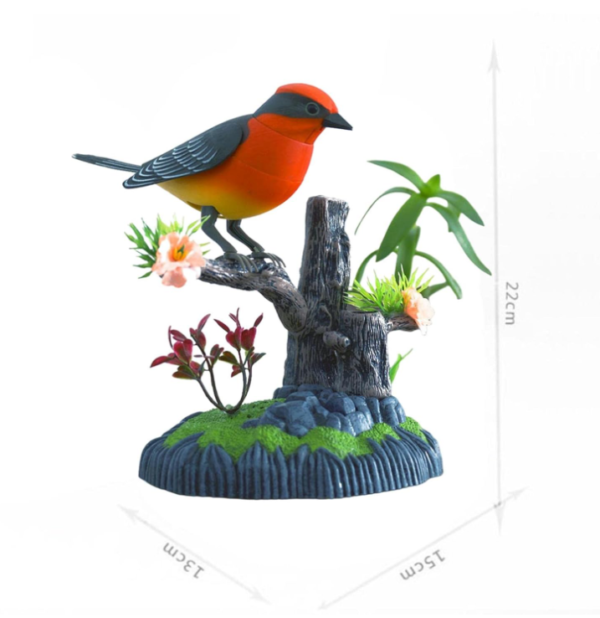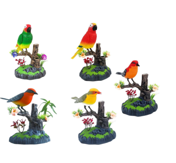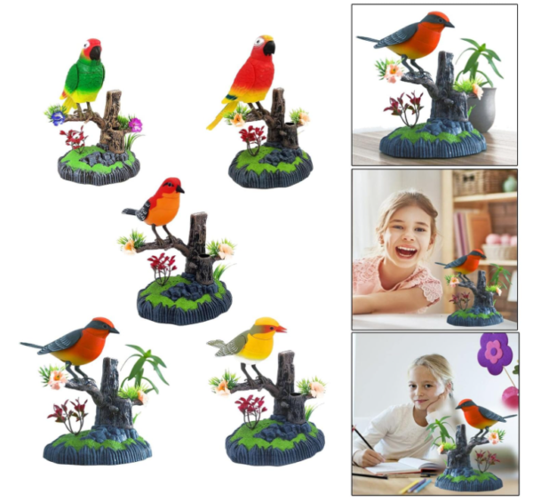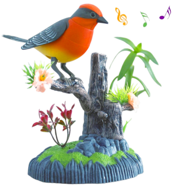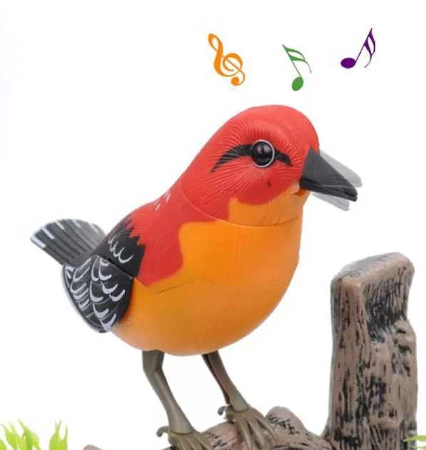 3. Hangvezérlés: A madár  hangvezérlésű, ami azt jelenti, hogy amikor zajt érzékel a környezetben, például amikor a toll vagy ceruza elmozdul, a madár elkezd csicsergést és egyéb hangokat hallatni.