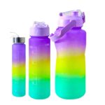 💙💜🧡 Hidratálj stílusosan és hatékonyan! Ez a háromrészes motivációs kulacs szett a mindennapok tökéletes kiegészítője, legyen szó sportról, munkáról, kirándulásról vagy otthoni használatról. A szett három különböző méretű palackot tartalmaz, így minden helyzetre megtalálod a legmegfelelőbbet!
