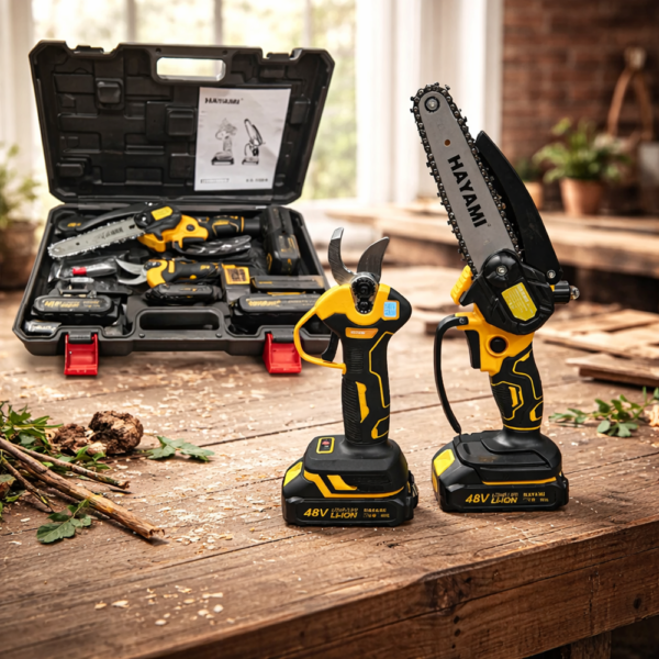 Dolgozz gyorsabban és hatékonyabban a kertben! A HAYAMI HA-1004 akkus metszőolló és mini láncfűrész szett egy professzionális, mégis könnyen kezelhető megoldás ágvágáshoz, metszéshez és daraboláshoz. A két eszköz kombinációja és a 2 akkumulátoros rendszer lehetővé teszi a folyamatos, megszakítás nélküli munkavégzést – akár nagyobb területeken is. 💪