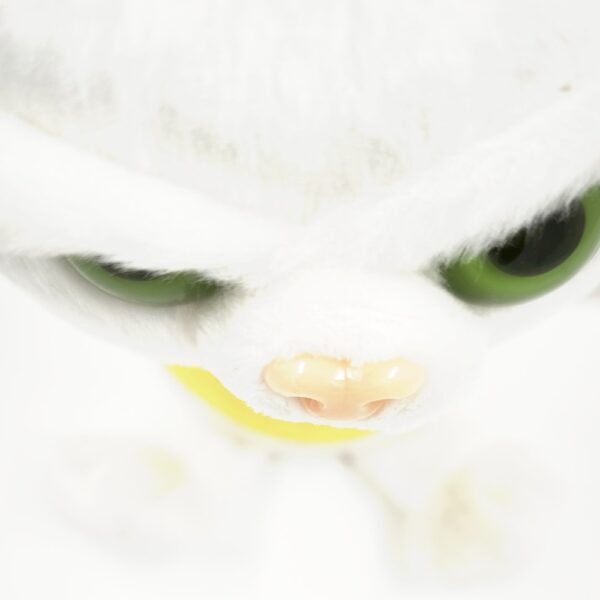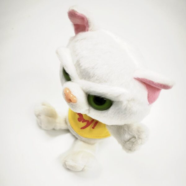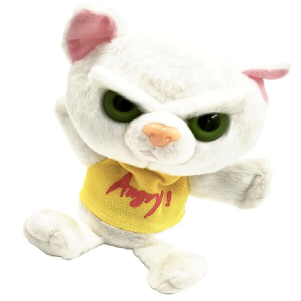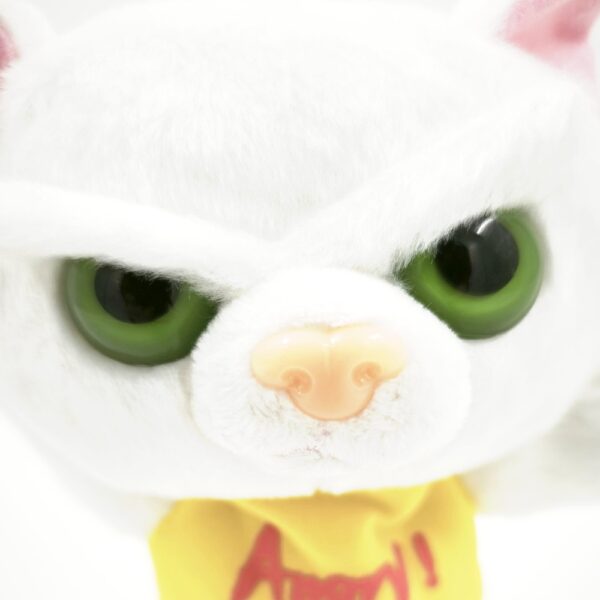 Ez a mérges macska plüss hófehér, puha szőrével, élénk zöld szemeivel és rózsaszín füleivel igazán látványos darab. A karakteres, dühös arckifejezés humoros kontrasztot alkot a puha, ölelhető kialakítással.