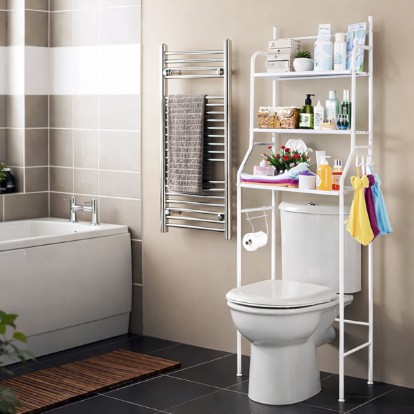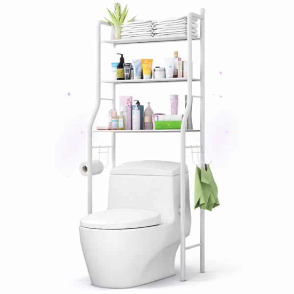 A HomeNest fürdőszobai tároló állvány WC fölé ideális megoldás a fürdőszoba rendezésére és a rendelkezésre álló tér maximális kihasználására. A háromszintes polcrendszer lehetővé teszi, hogy a WC feletti üres területet praktikus tárolóhellyé alakítsd, így könnyedén rendszerezheted a törölközőket, kozmetikumokat, tisztítószereket vagy WC-papírt.