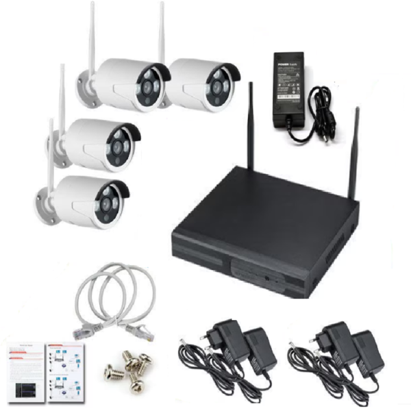 - 1 × Vezeték nélküli NVR szerver (4 csatornás, beépített WiFi routerrel)