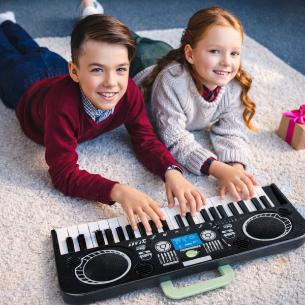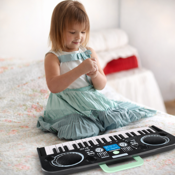 A KeyVibe gyerek elektromos szintetizátor egy szórakoztató és fejlesztő játék, amely segít a gyerekeknek felfedezni a zene világát. Ha egy olyan terméket keresel, ami tanít, szórakoztat és inspirál, akkor ez a tökéletes választás a kis zenészek számára! 🎶🔥