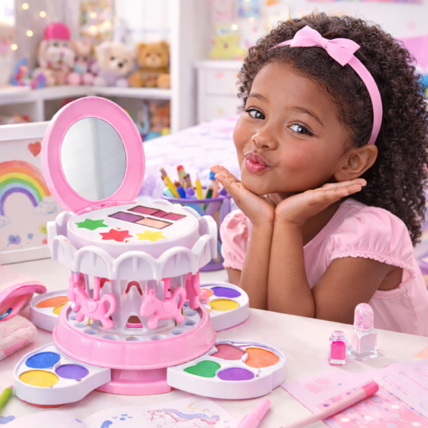 A körhinta rózsaszín sminkkészlet egy kedves, inspiráló és kreatív játék, amely segít a gyerekeknek felfedezni a színek és az önkifejezés világát – nyomás nélkül, örömmel.