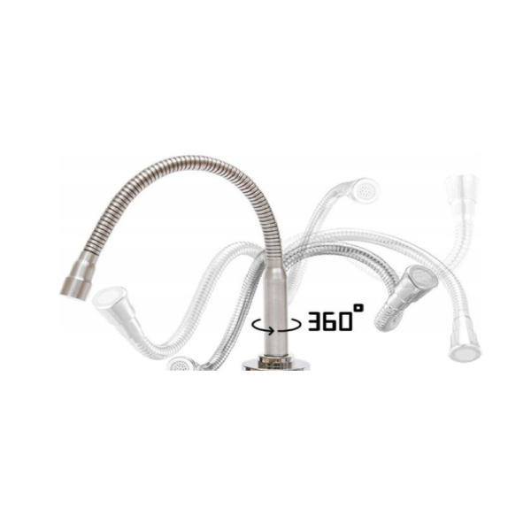 🔹 360°-ban forgatható flexibilis szár – A hajlítható és teljesen elforgatható kifolyócsőnek köszönhetően maximális rugalmasságot biztosít. Ideális választás egy- vagy kétmedencés mosogatókhoz, fürdőszobai mosdókhoz, vagy akár kisebb helyiségekhez is.