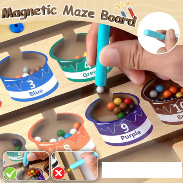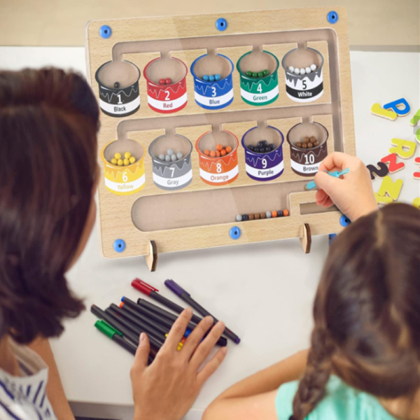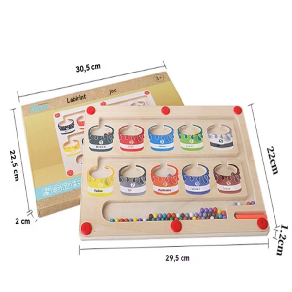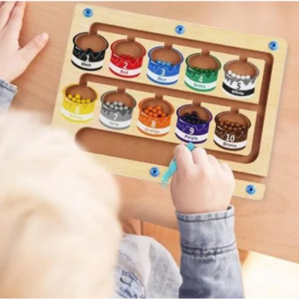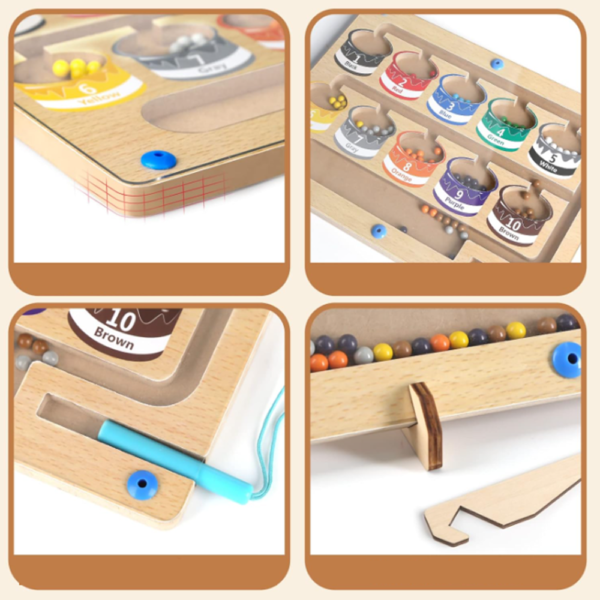 Ez a mágneses szám- és színlabirintus egy izgalmas, Montessori ihletésű fa fejlesztő játék, amely segíti a gyerekeket a számok, színek és alapvető matematikai készségek elsajátításában.