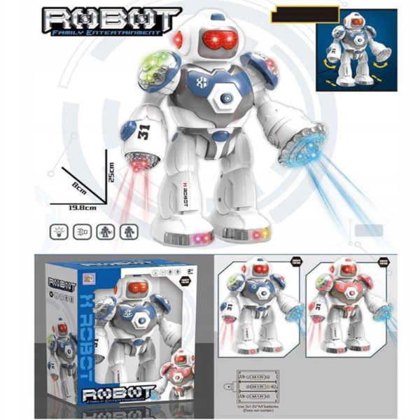 A robot tartós, strapabíró műanyagból készült, így ellenáll a mindennapi játék okozta igénybevételnek. A négykerekű, csúszó alváz biztosítja, hogy a robot simán és stabilan mozogjon, miközben a gyerekek irányítják, követik a mozgását és élvezik a fény- és hanghatásokat. 🌟