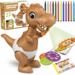 A 20 cm x 16 cm x 8,5 cm centiméteres, kivetítős játék asztallal különféle járműveket, gyümölcsöket és állatokat tudtok az asztallapra kivetíteni, amiket a mellékelt filctoll készlettel könnyedén körbe rajzolhattok, majd ki is színezhettek. A készletben találunk még egy papírt csomagot is, amivel azonnal el is kezdheti a kicsi a rajzművészet gyakorlását.