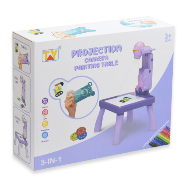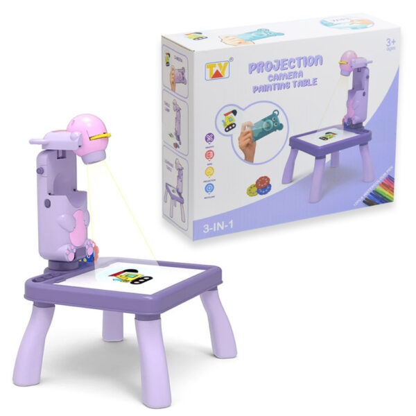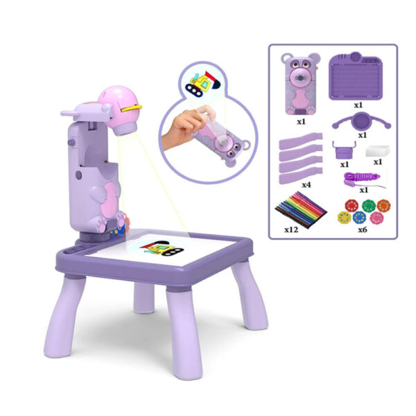 Mini projektoros zenélő rajzasztal gyerekeknek – filctollakkal, mintákkal lila (BBJ)