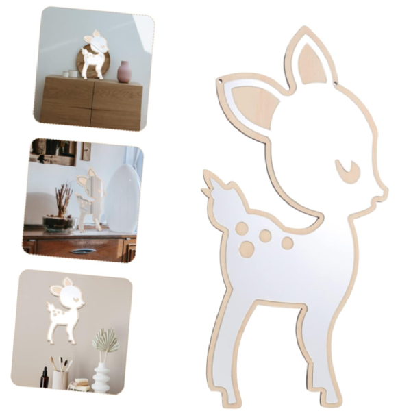 Őzike formájú gyerekszoba fali tükör – aranyos dekoráció babaszobába és gyerekszobába (BLLV)