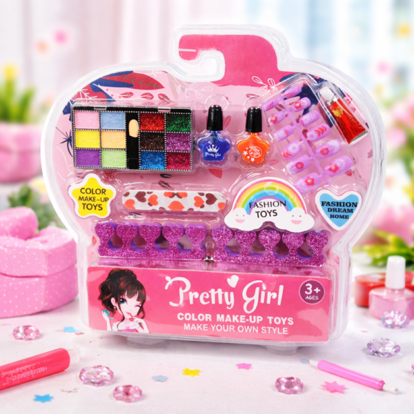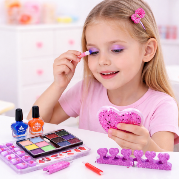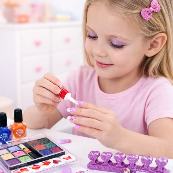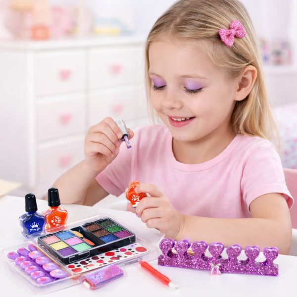 Ez a 7 darabos kozmetikai készlet minden fontos elemet tartalmaz, amire egy kislány vágyhat: körömlakkok, sminkek és kiegészítők, amelyekkel egyedi megjelenést alkothat – akár otthon, akár egy szülinapi zsúron vagy baráti játék közben.