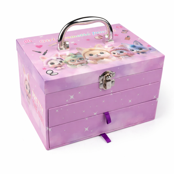PrincessGlow Beauty Studio gyerek sminkkészlet – többfiókos kozmetikai sminkdoboz tükörrel kislányoknak (BBJ)
