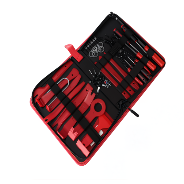 Ez a komplett kárpit- és patentkiszedő szerszámkészlet az autószerelés és karbantartás nélkülözhetetlen eszköze. Kifejezetten úgy tervezték, hogy megkönnyítse a jármű belső elemeinek – például ajtópanelek, díszlécek, ablakélek, klipszek, rögzítők, emblémák, rádiók vagy akár autós audiorendszerek – sérülésmentes eltávolítását és visszaszerelését.