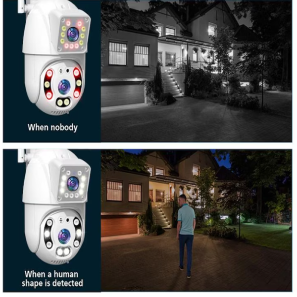 Ez a dupla lencsés kültéri kamera ideális választás, ha szeretnéd teljes körűen megfigyelni otthonodat, irodádat vagy vállalkozásodat. A PTZ funkció, a Full HD felbontás, a színes és infravörös éjjellátó mód, valamint az AI mozgás- és emberi alakérzékelés kombinációja biztosítja a maximális biztonságot és kényelmes vezérlést bárhonnan.