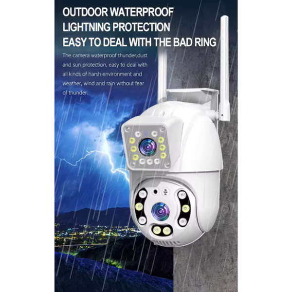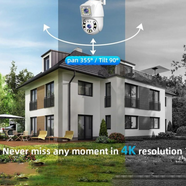 Őrizd meg otthonod, üzleted vagy irodád biztonságát 24/7 ezzel a professzionális WiFi PTZ kültéri megfigyelő kamerával, amely a legmodernebb technológiát ötvözi a kényelmes okostelefonos vezérléssel, a dupla lencsés megfigyeléssel és az intelligens mozgásérzékeléssel. A kamera két 8MP felbontású objektívvel rendelkezik, így egyszerre két különböző területet tudsz figyelni, biztosítva a teljes körű védelmet.