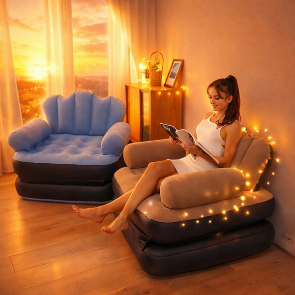 RelaxoAir 2 az 1-ben felfújható fotel és ágy – kényelmes levegős egyszemélyes kanapéágy otthonra és vendégágyként (BBM)