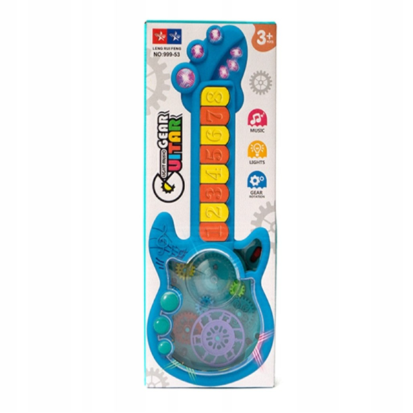A RockManó zenélő gyerek gitár tökéletes első hangszer a kicsik számára! Színes LED fényekkel, vidám dallamokkal és látványos forgó fogaskerekekkel varázsolja el a gyerekeket, miközben játékosan fejleszti a ritmusérzéket, a kéz-szem koordinációt és a finommotorikát.
