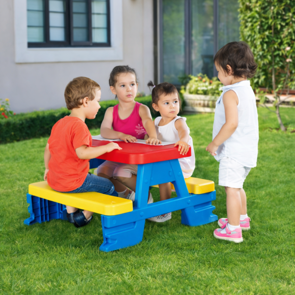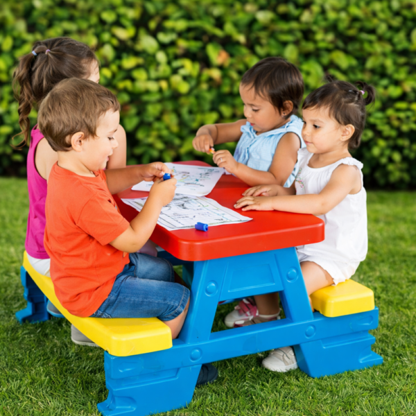 - Kényelmes ülések 4 gyermeknek: Az asztal mellett akár 4 kisgyermek is kényelmesen elfér, akik együtt játszhatnak, vagy finom nasikat fogyaszthatnak.