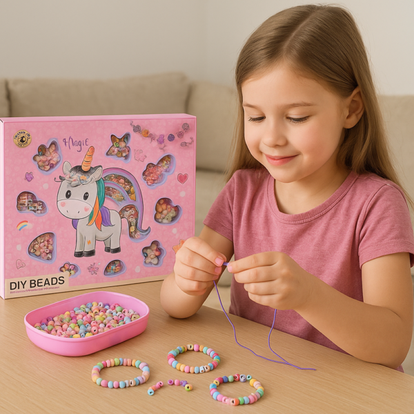 Unikornisos gyöngyfűző készlet gyerekeknek – színes DIY ékszerkészítő szett 3 éves kortól (BBJ)