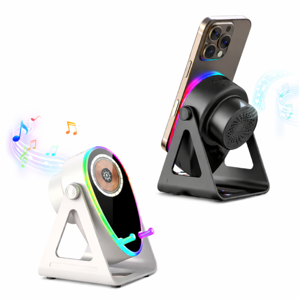 Vezeték nélküli töltős hangszóró telefontartó LED hangulatfénnyel – univerzális okostelefon állvány (BBD)