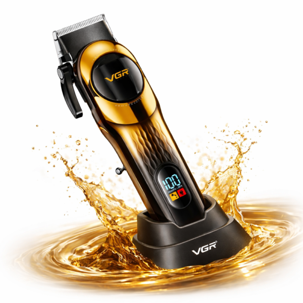 VGR V-166 professzionális akkus hajvágó – vezeték nélküli haj- és szakállvágó LED kijelzővel, rozsdamentes acél pengékkel, arany (BBD)