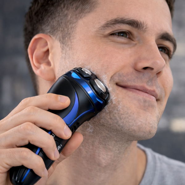 Az áramvonalas és csúszásmentes kialakítás biztosítja a kényelmes fogást és a stabil használatot. A kompakt méretnek köszönhetően a borotva könnyen hordozható.