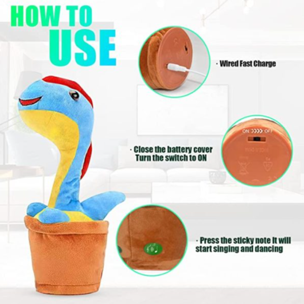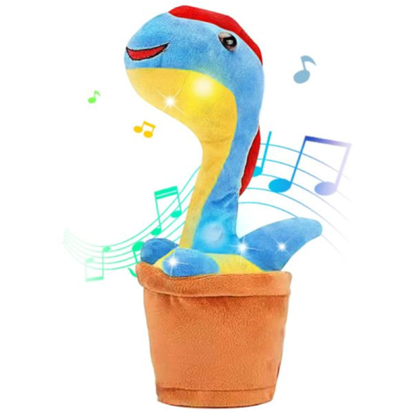 Énekeljetek és táncoljatok együtt, remek szórakozás lesz kisebbeknek és nagyobbaknak is. A plüss dínó aranyos hangon beszél, mindent elismétel, amit mondasz neki, táncol és világít is, beépített akkumulátorral működik, így csak fel kell töltened a mellékelt USB kábellel.
