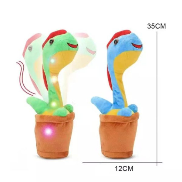 Az éneklő és táncoló dinoszaurusz puha plüss borítású, nagyon szórakoztató játék és remek díszítő eleme lesz bármely gyerekszobának.